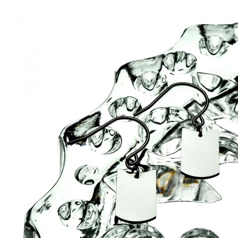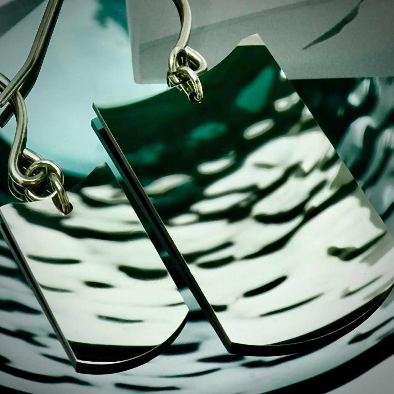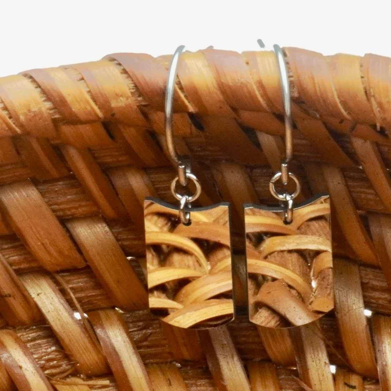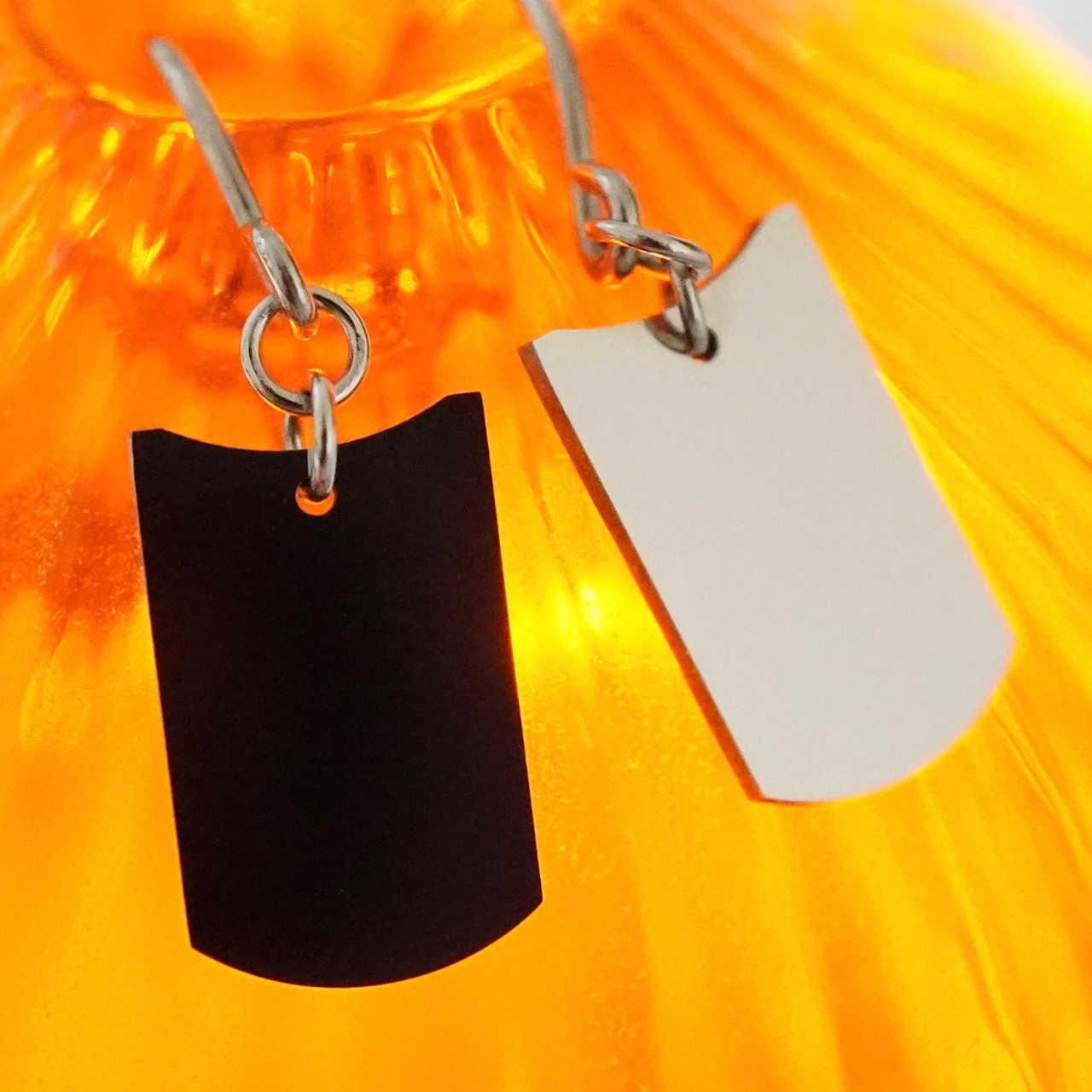 タグの両面が超鏡面に磨かれているので、揺れるたびに360°どの方向からでも美しく煌めき、小ぶりながらも存在感があるピアスです。通常のネームタグの形とは異なり上側のカーブが耳たぶの形に沿ったカーブになっているので、シャープで洗練された印象も与えてくれます。