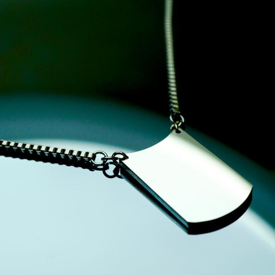 ネームタグは平面形状なので超鏡面が最も生かせるモチーフの1つだと私たちは考え、超鏡面の美しさ・比類ない輝きを存分に堪能していただくために、あえて刻印や絵柄を入れずに、タグの両面とも超鏡面に研磨しました。